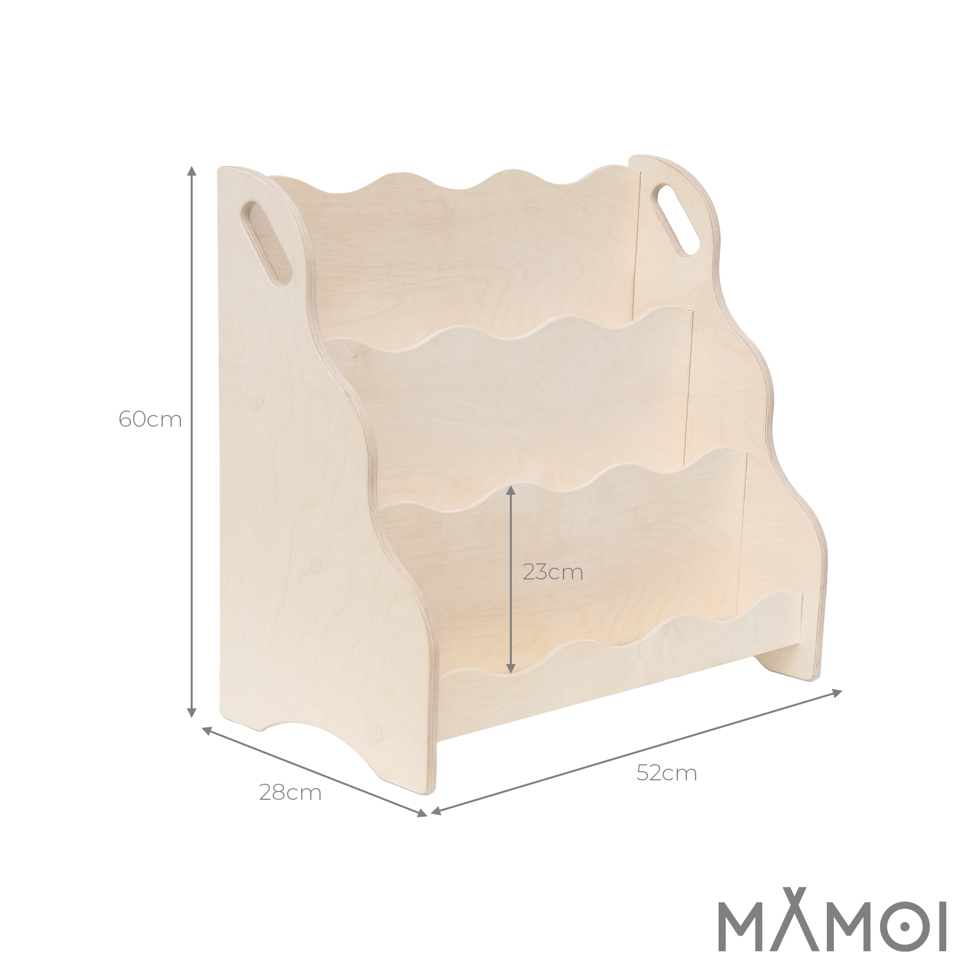 MAMOI® Bücherregal und Aufbewahrungsschrank für Kinder | Wandregal | Montessori Wellenregal für das Kinderzimmer | Holzregal und Kindermöbel