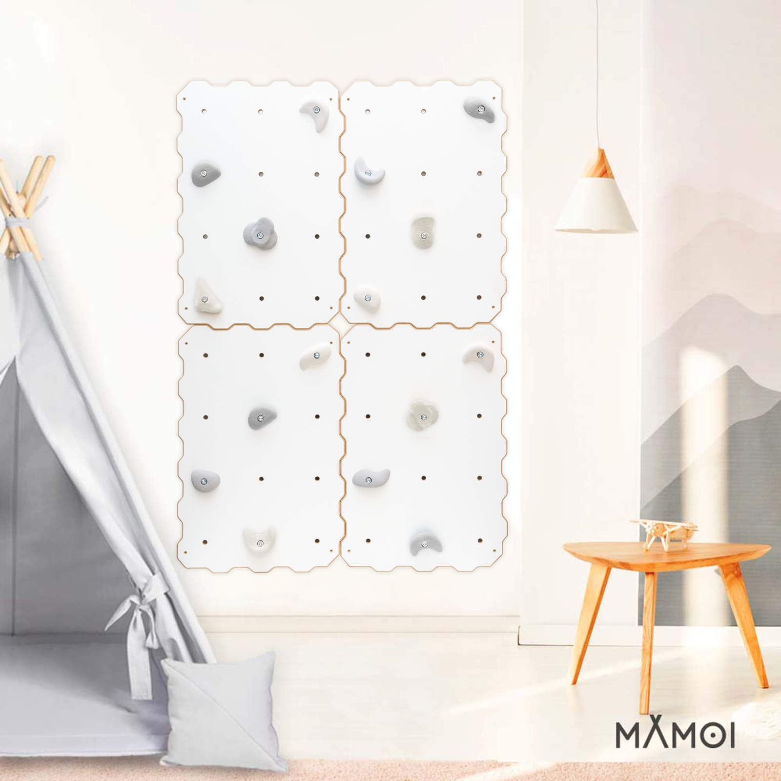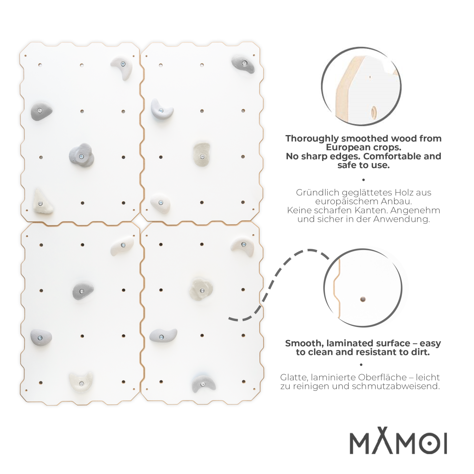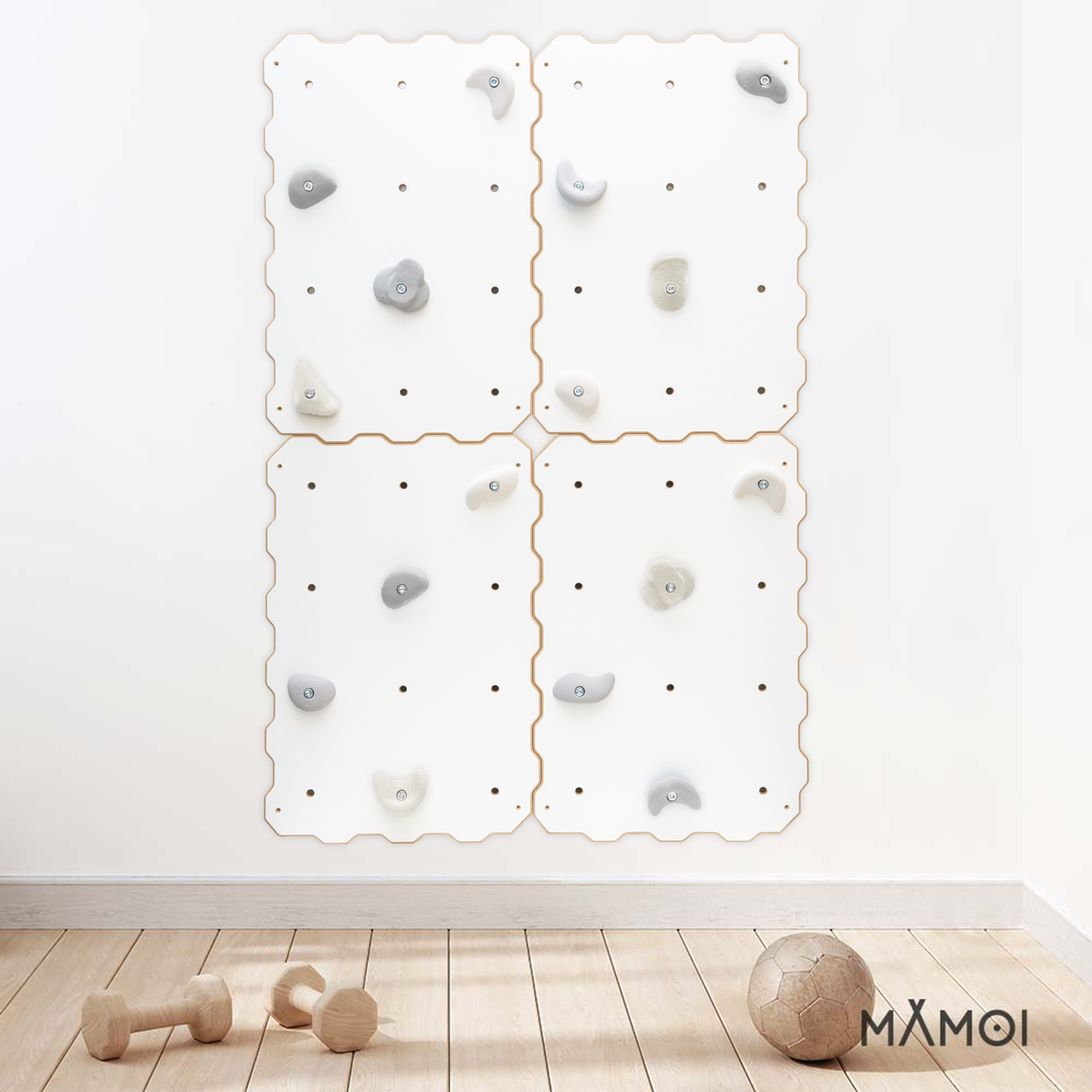 MAMOI® Indoor-Kletterwand mit Griffen, 4 Module, moderne Kletterwand für das Zimmer, weiße Holzwerkstoffplatte, Kletterset zur Montage
