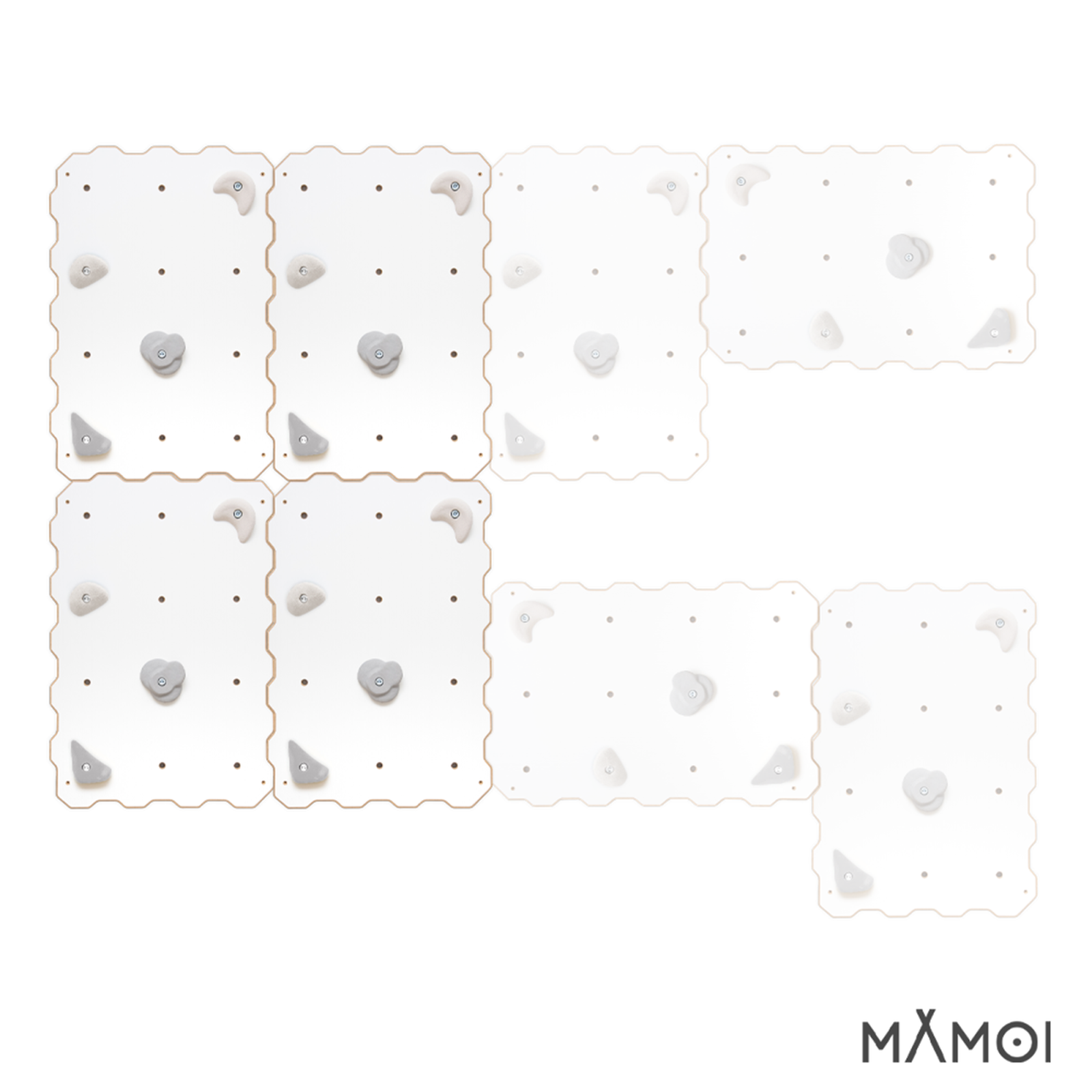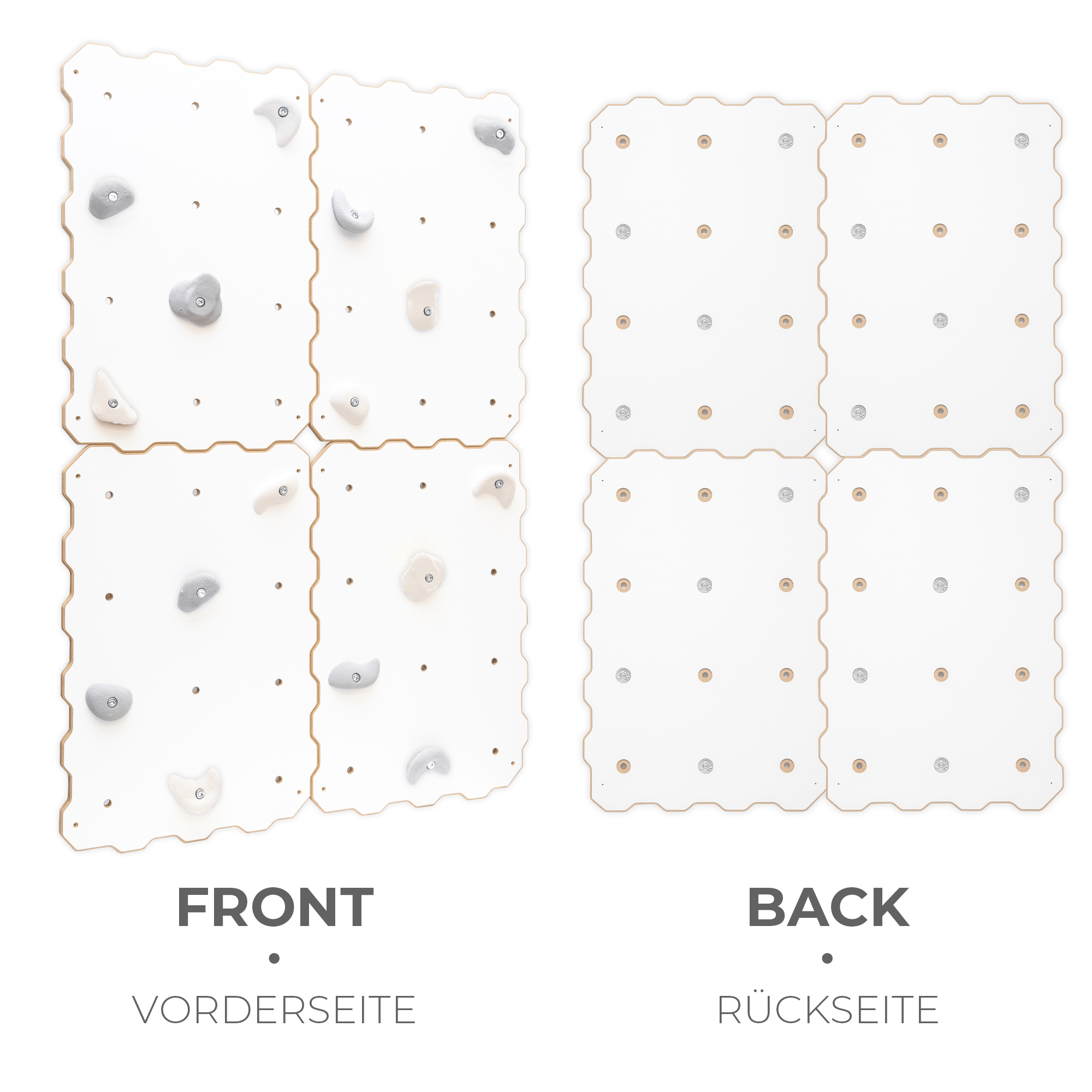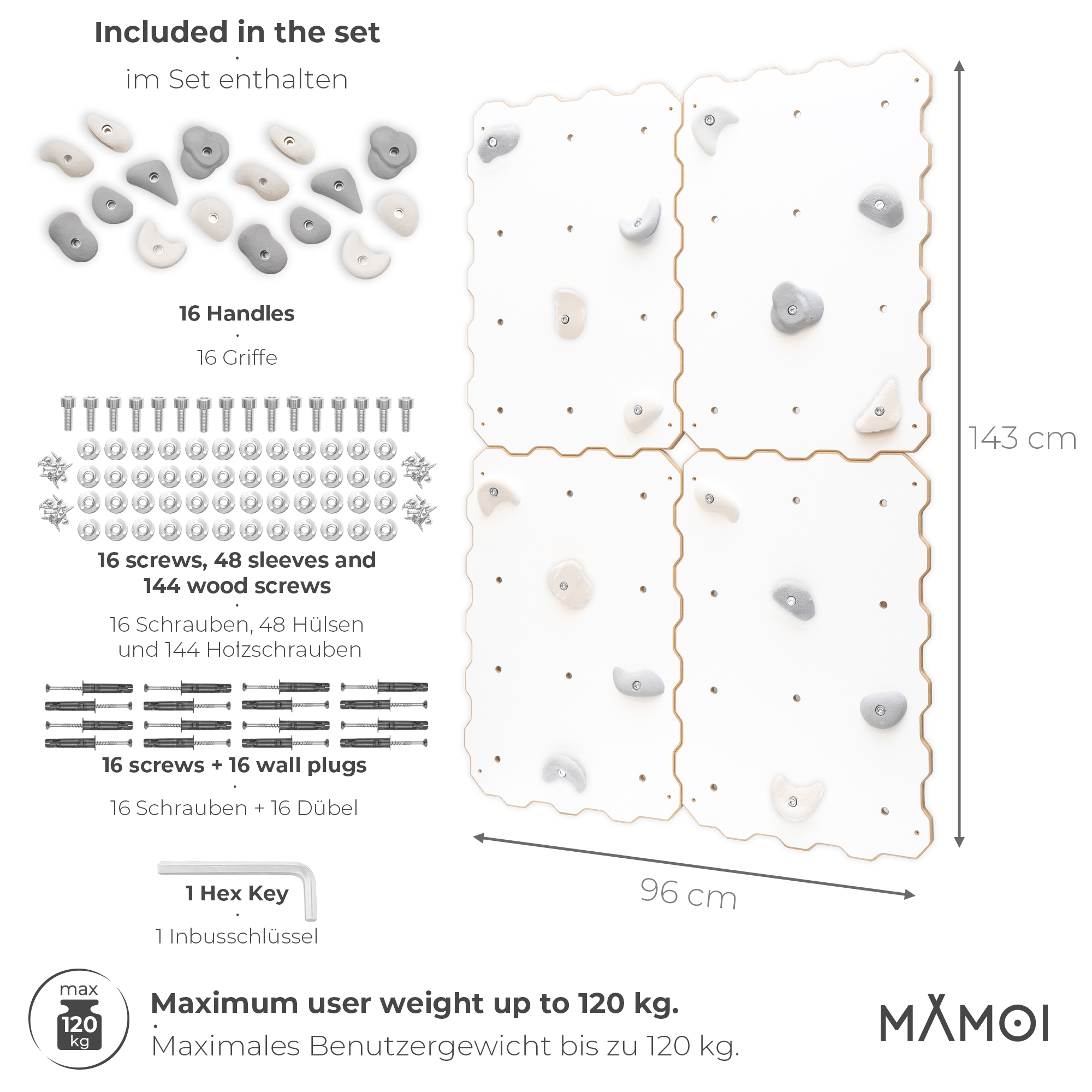 MAMOI® Indoor-Kletterwand mit Griffen, 4 Module, moderne Kletterwand für das Zimmer, weiße Holzwerkstoffplatte, Kletterset zur Montage