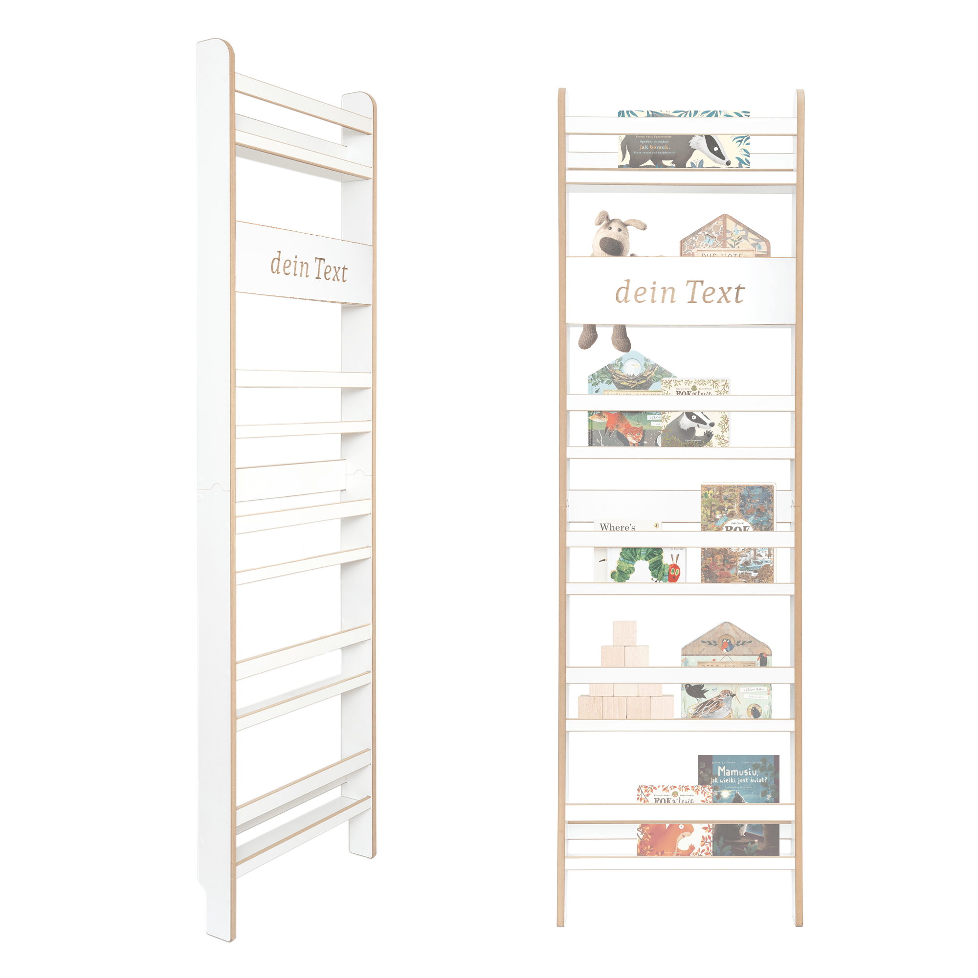 Nach dem Montessori-Prinzip fördert das Regal die Selbstständigkeit und Verantwortungsbewusstsein des Kindes. Zudem ermöglicht es eine Personalisierung von bis zu 16 Zeichen, beispielsweise mit dem Namen des Kindes oder einem kurzen Schriftzug, was ihm eine individuelle Note verleiht.