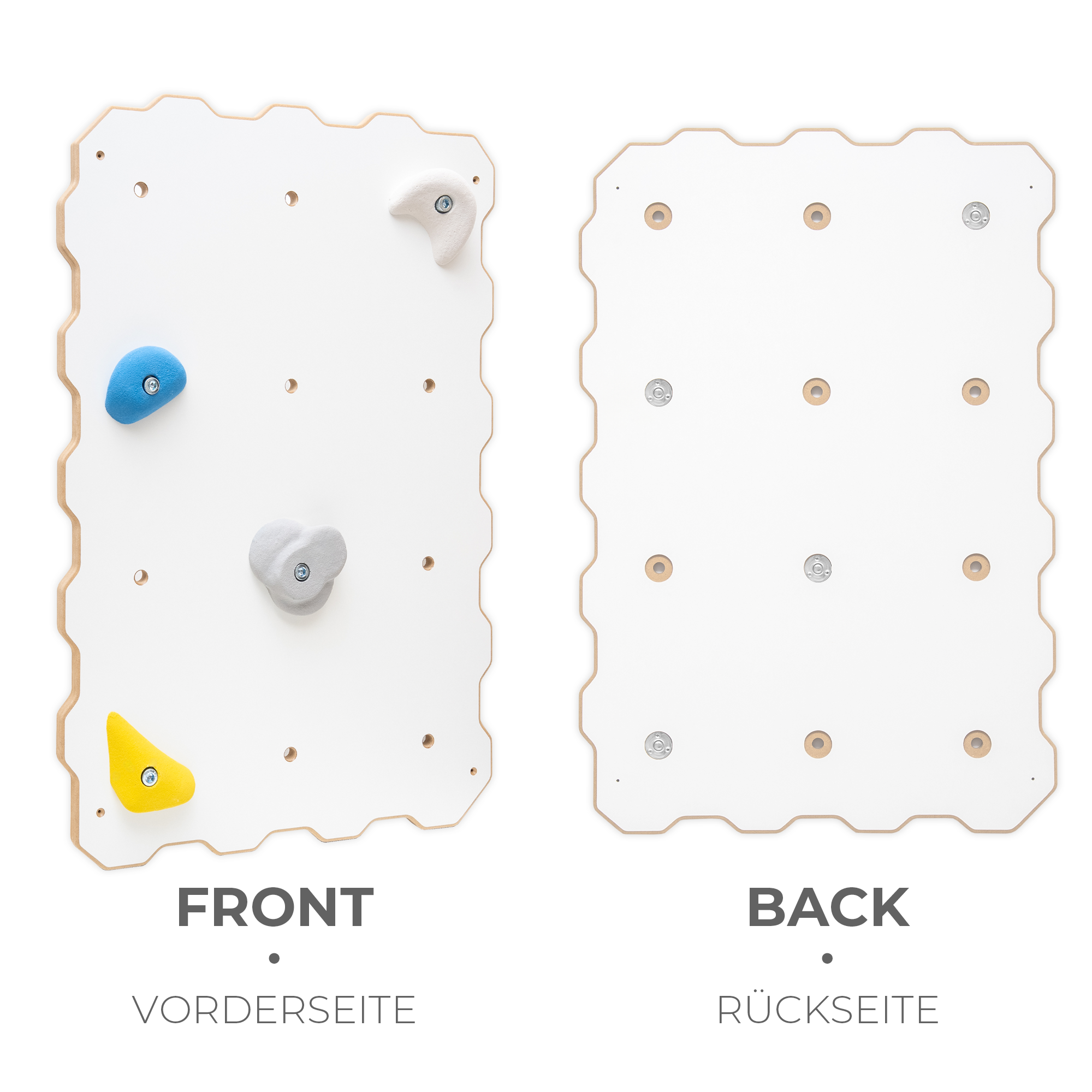 ✔ Einfache Montage – Das Kletterwand-Modul für den Innenbereich besteht aus einer robusten Holzwerkstoffplatte mit einer Stärke von 18 mm in Weiß. Vorgebohrte Löcher ermöglichen eine schnelle und stabile Befestigung der Klettergriffe.