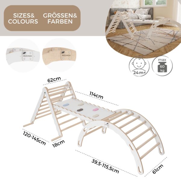 MAMOI® Set : Triangle, arche escalade et toboggan pour enfant, Structure motricité interieur pour bébé, Mur descalade et tobogan intérieur en bois pour bebe, Motricite montessori 3 ans