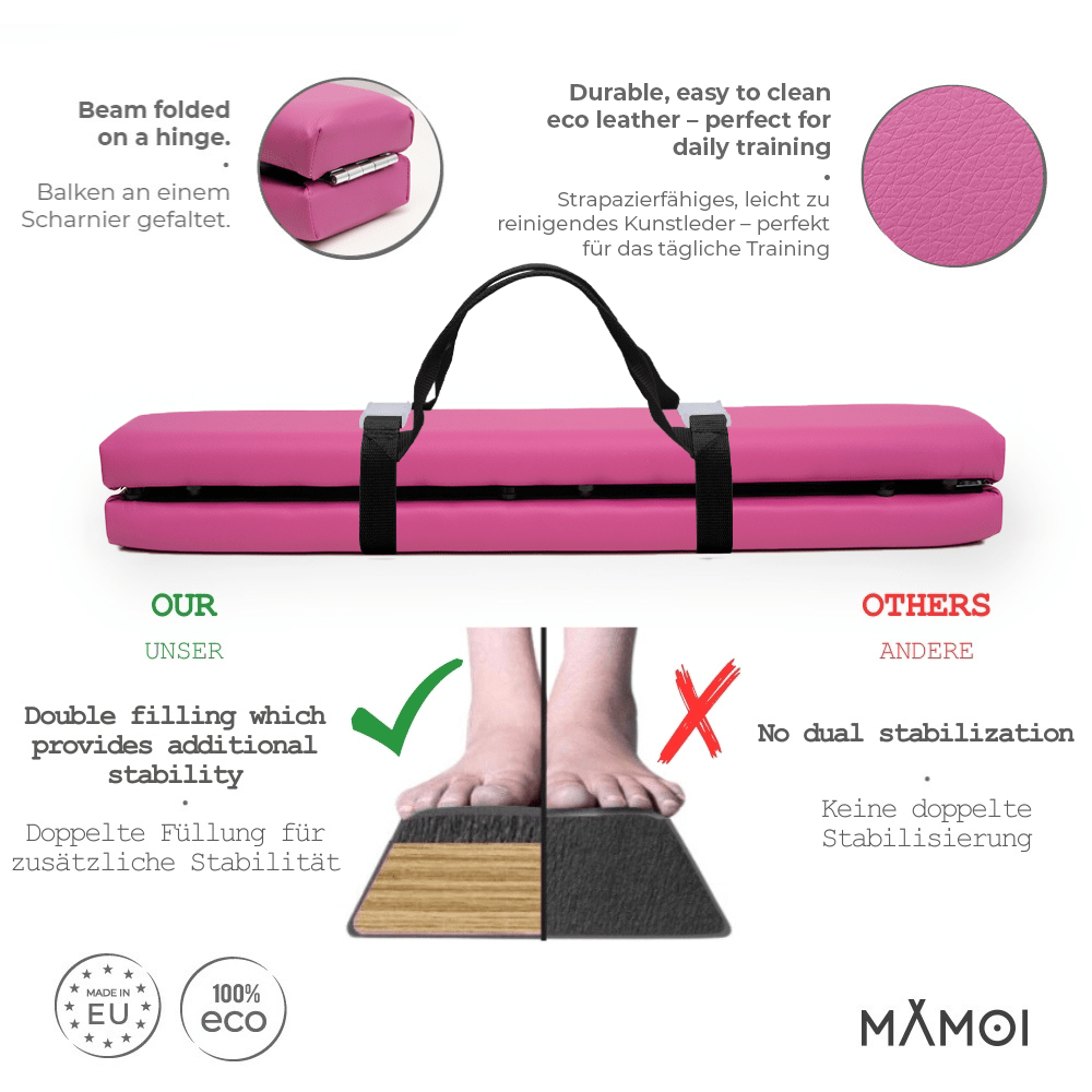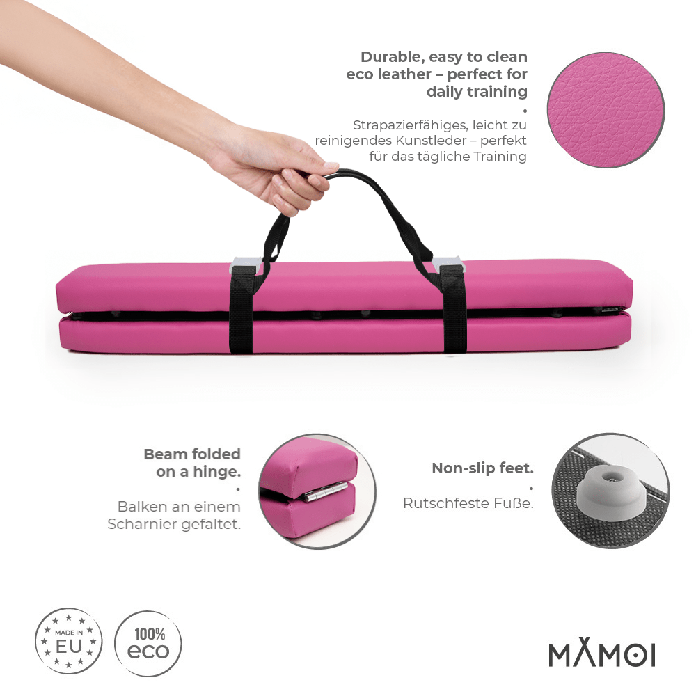 MAMOI® Foldable Gymnastics Beam with Synthetic Leather 200 cm, Non-Slip Training Beam for Kids and Adults, Soft Surface, For Home Use, Folding Design, 180 kg Weight Capacity