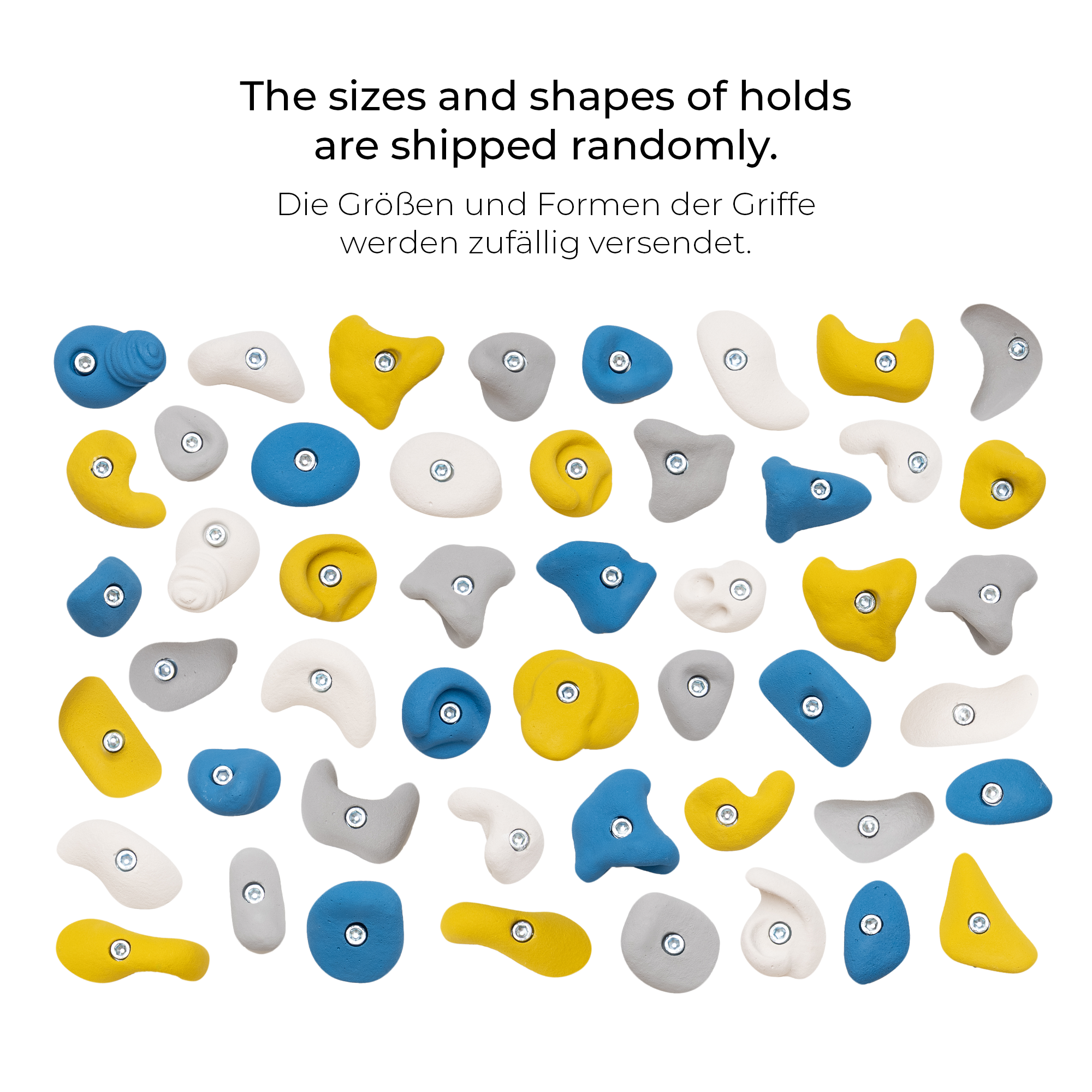 ✔ Unikalny charakter – Rozmiary i kształty uchwytów są wysyłane w różnych wariantach, dzięki czemu każdy zestaw jest wyjątkowy i ma indywidualny wygląd, co pozwala stworzyć oryginalną ściankę wspinaczkową.